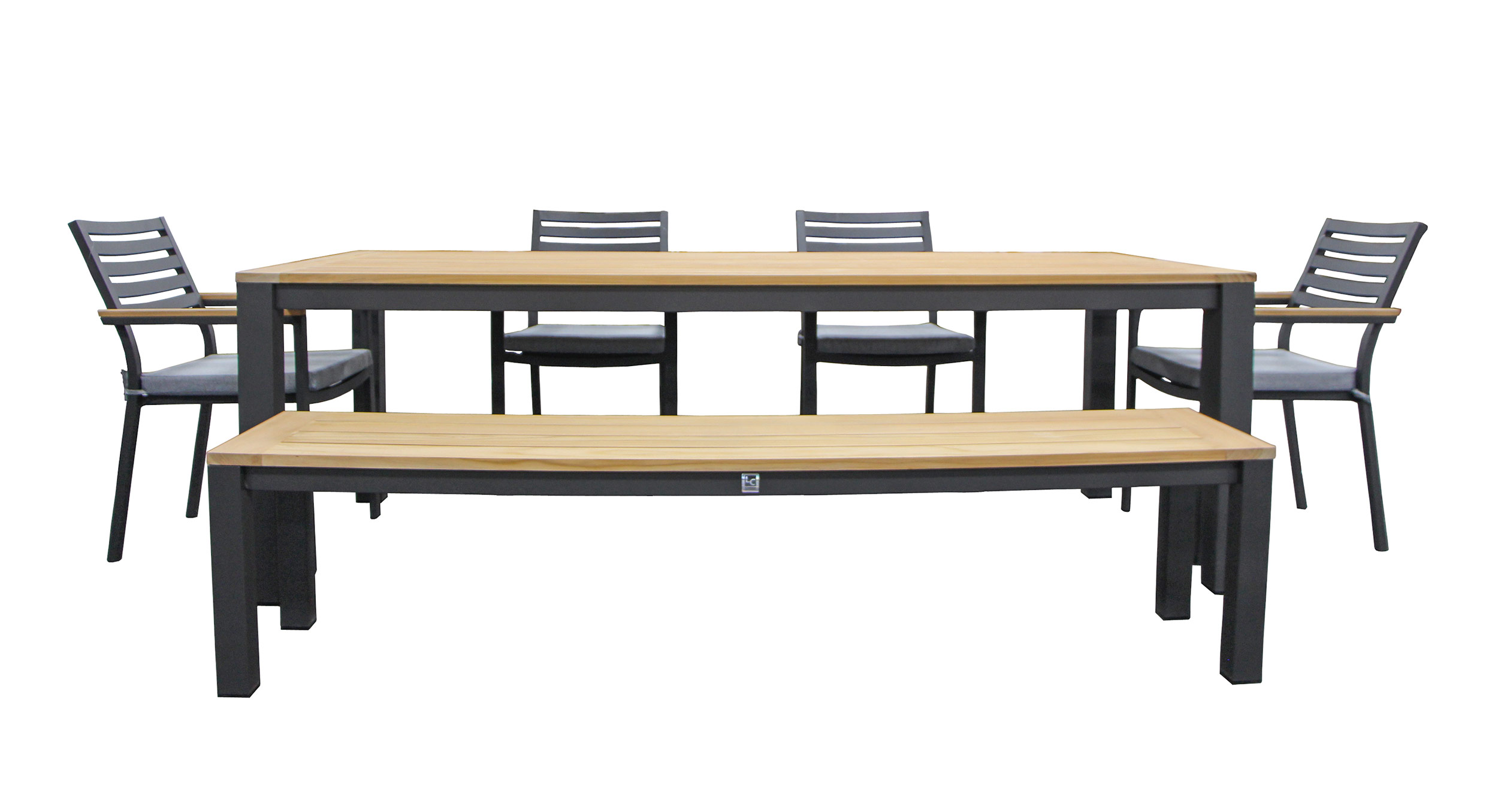 Dining Set III Gartenset Sitzgruppe anthrazit mit Teak